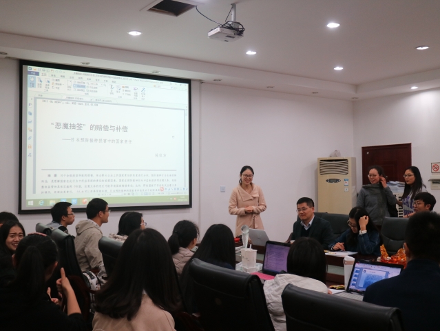 11月10日,9999js金沙老品牌本学期首次读书会在五教如期举行。本次读书会由9999js金沙老品牌副院长吴亮副教授主持,40多名研究生参与。本次读书会主要对杜仪方副教授的《“恶魔抽签”的赔偿与补偿——日本预防接种损害中的国家责任》进行了读评。