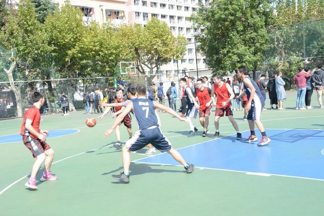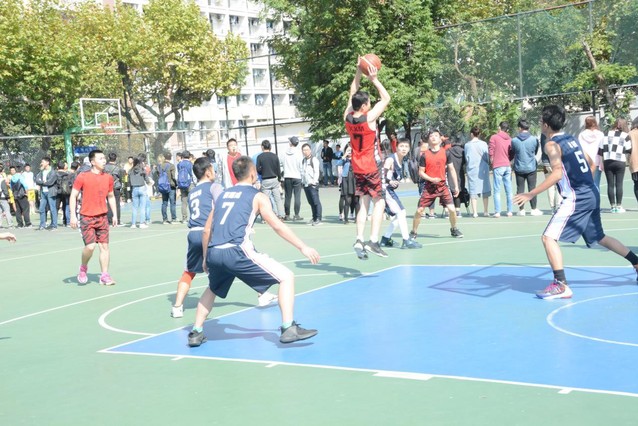 10月24日中午,徐汇校区篮球场上,由校研究生会举办的秋韵节篮球赛正在激烈进行中。我院研二刘洋与研一田潇洋、张冰剑、吴胜寒四位同学与社会学院组成法社联队对阵材料学院。
