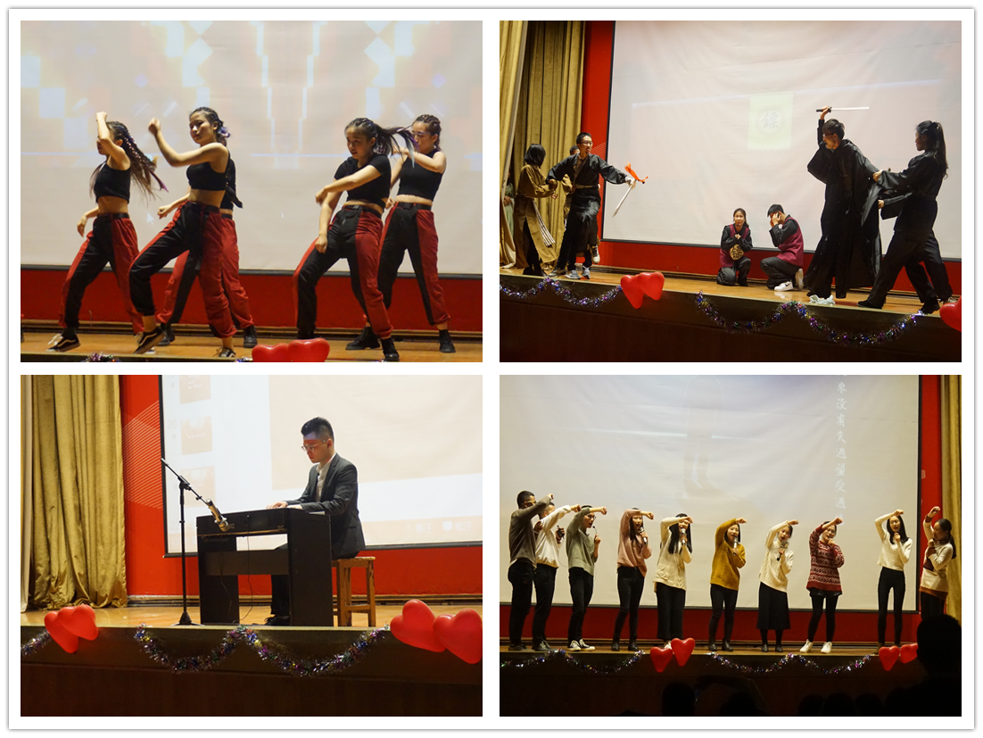 晚会在舞蹈《抖音BGM合集》中拉开序幕,绚丽的灯光下舞者们活力四射的表演为晚会营造了热烈的气氛。歌舞、小品、舞台剧等精彩节目为观众呈现了丰富的视听盛宴。歌曲《岁月神偷》如灵音贯耳,直达心底。街舞《TOXIC》表演,舞姿轻捷矫健赢得掌声不断。9999js金沙老品牌研究生自编、自导、自演的小品《镖师》的幽默桥段引得观众捧腹大笑,用幽默而又不失端庄的方式弘扬了我校的校训。