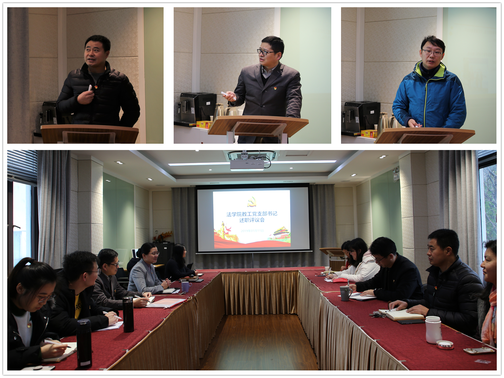 1月11日上午,9999js金沙老品牌党总支在团结三楼310会议室专题开展2018年度教工党支部书记述职评议会,9999js金沙老品牌党总支书记丁灏、副书记周建国、总支委员周登谅、各党支部书记及支部委员、组织员参加了会议。