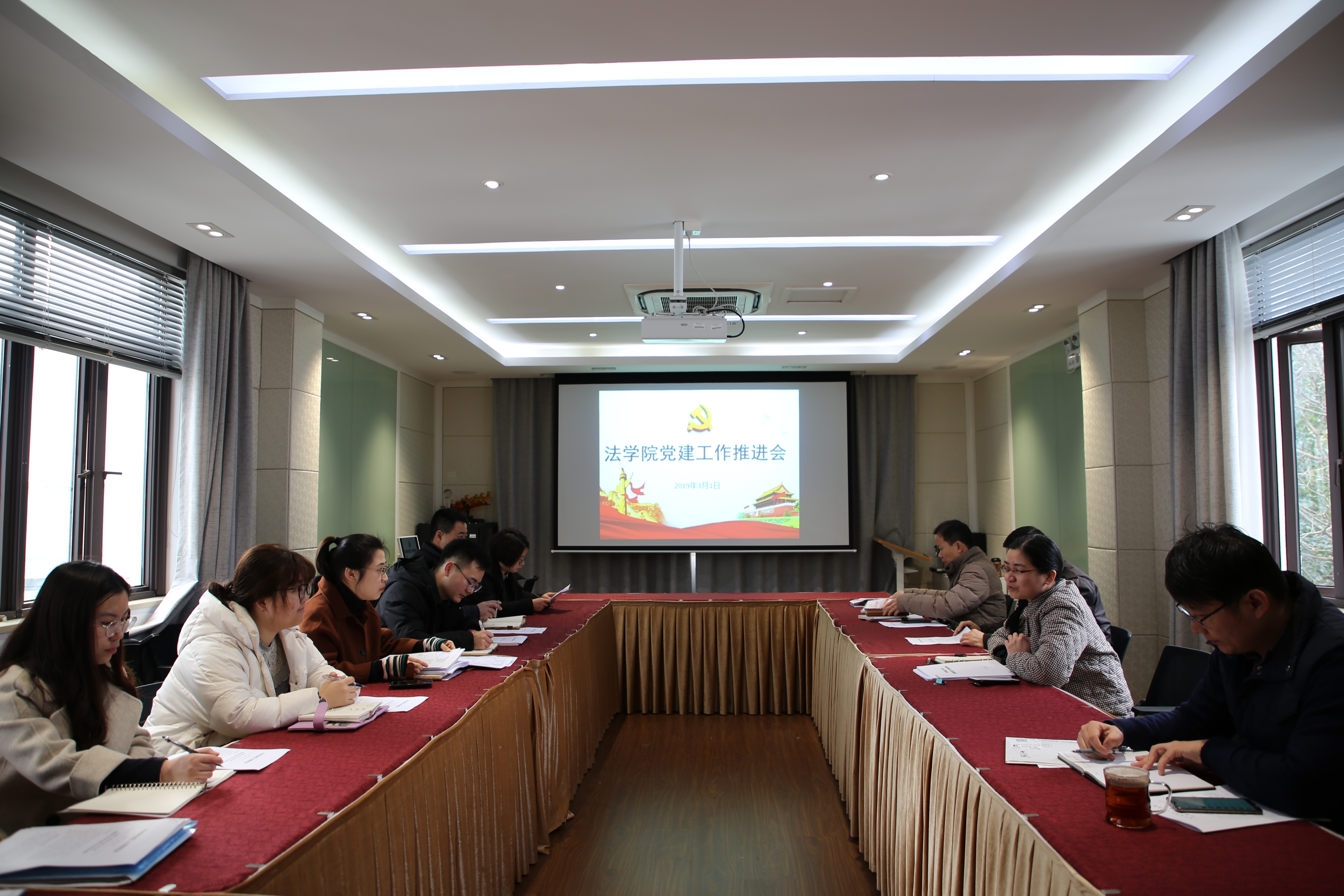 3月1日,9999js金沙老品牌2019年党建工作推进会在团三310召开,9999js金沙老品牌党总支书记丁灏、副书记周建国、组织员、辅导员及全体支部书记参加会议。