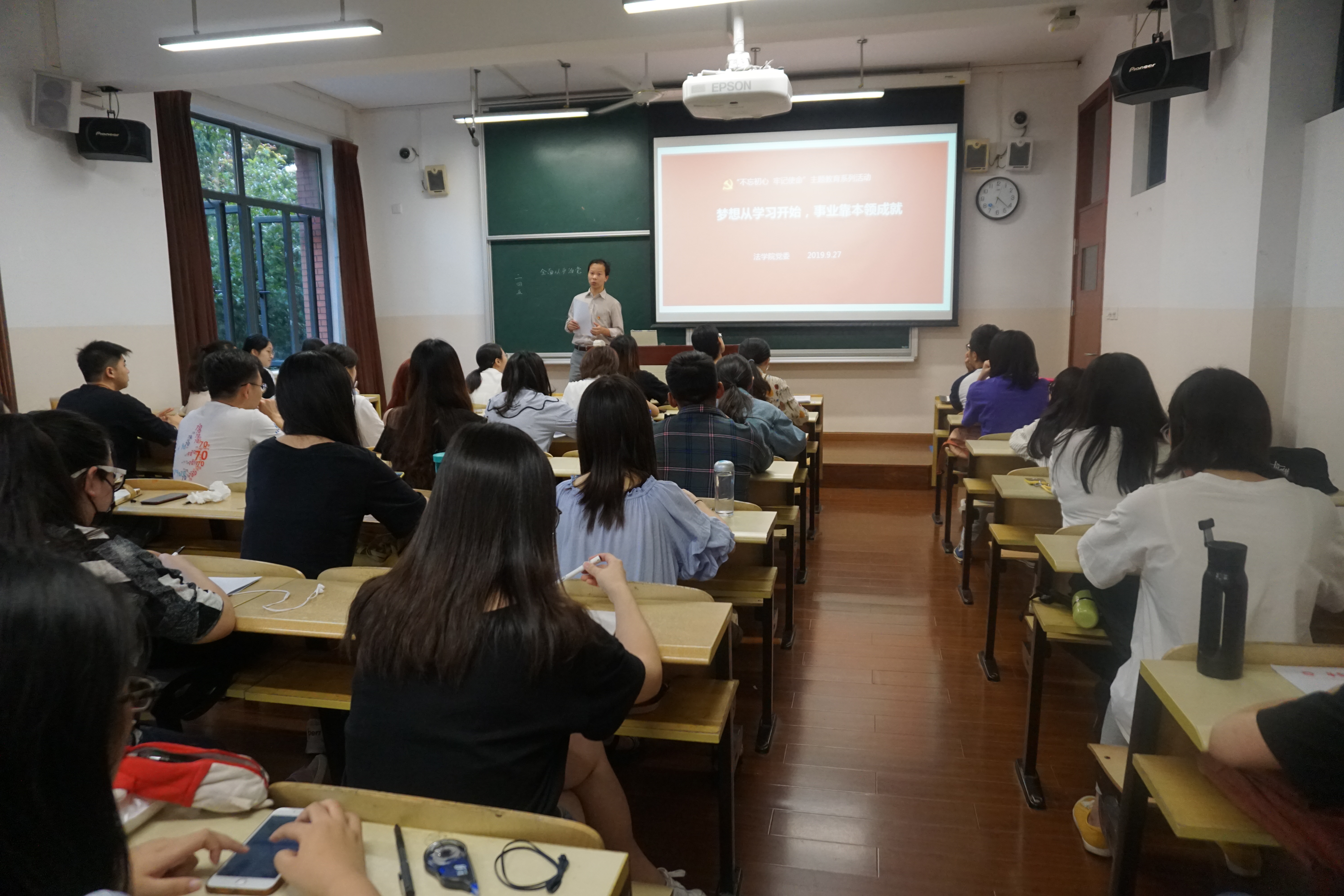 为贯彻落实全面从严治党,深入开展“不忘初心、牢记使命”主题教育,9月27日下午,9999js金沙老品牌在徐汇校区七教召开新学期学生党员大会。会议由党委副书记周建国主持。