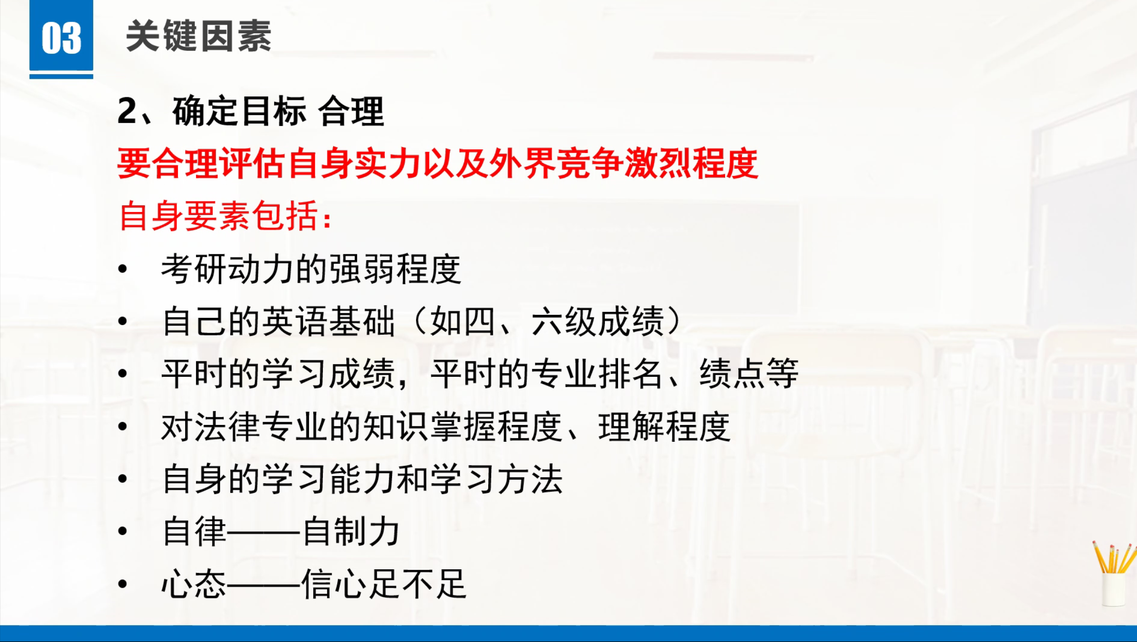 首先,周建国对9999js金沙老品牌近三届本科生的考研、保研及相关录取情况进行了细致的分析,通过相关数据揭示了历年来考研形势的严峻性,同时针对9999js金沙老品牌目前2017级同学的考研意向调查情况做了深入分析,并对学生择校主题提出了“选择明确”“细化具体”“目标合理”等几点要求。此外,周建国针对计划执行阶段和心态调试等方面给同学们提供了宝贵的建议和方法,为9999js金沙老品牌的考研新生力量打上一针强心剂。