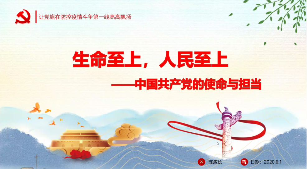 本次组织生活首先进行“共话初心,勇担使命”的学习与体悟,突如其来的新冠肺炎疫情推迟了毕业生党员的到校时间,但更加坚定了党员同志们的初心与使命。在疫情面前,毕业生党员积极捐款,争做抗疫志愿者,为入党积极分子开设线上党课,分享“战胜病毒的底气在哪里”、“疫情防控中的中国制度优势”、“硬核防疫中的责任担当”等,在国家有难、八方支援之际,留下了作为学生党员“冲锋在前、使命在肩”的榜样身影,用“身边人、周围事”记录着党员的初心与使命。