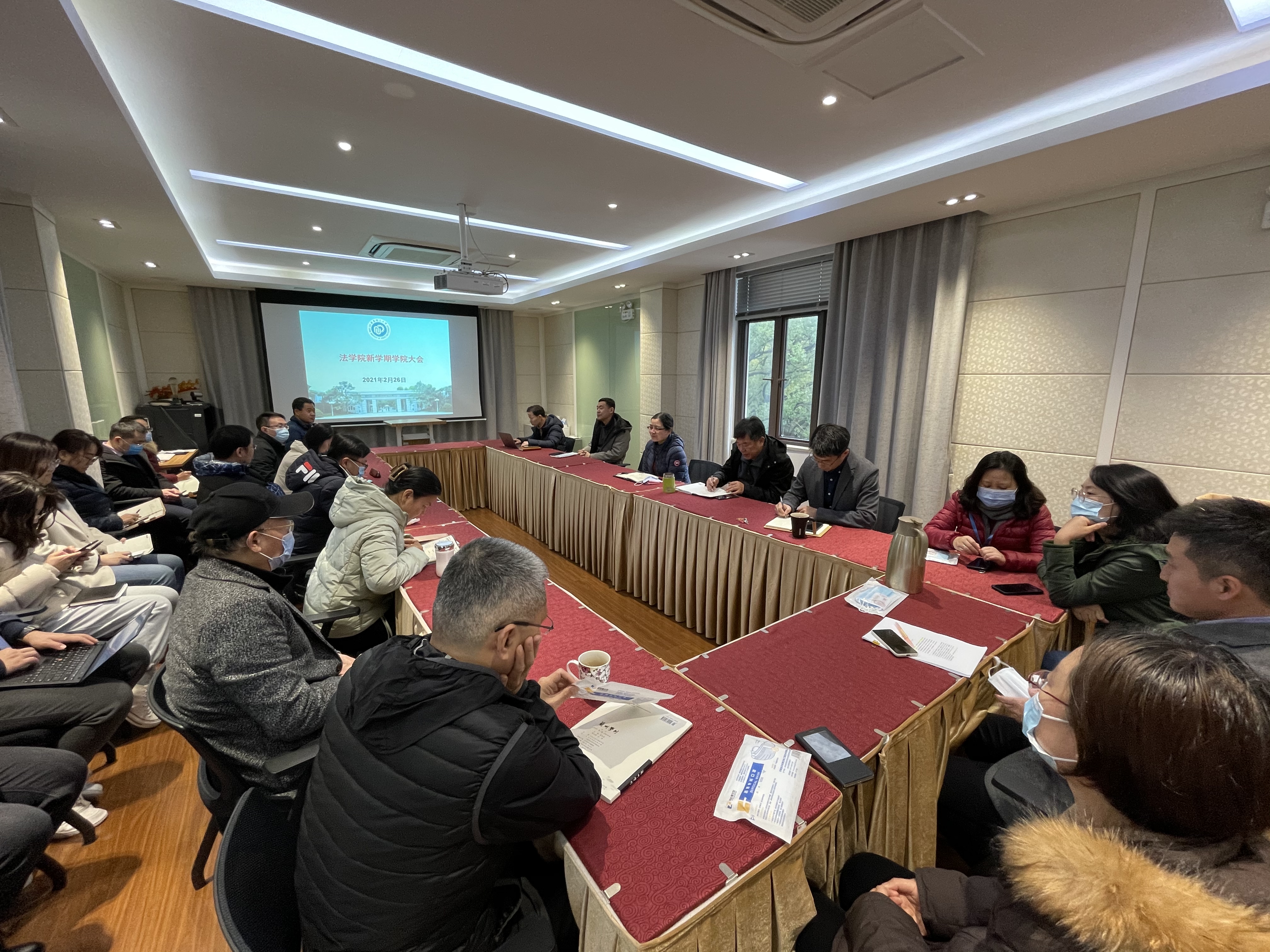 院长张昱强调了新学期上课、本科审核评估、培养方案修订、知识产权二学位建设、人才引进、科研、学生考研就业等本学期重点工作,希望大家做到疫情防控不松懈,切实提高教学和培养质量,全方位提高自身科研能力,积极参与到服务学生成才的各项工作中去,共同促进学院发展。丁灏首先感谢大家为疫情防控作出的贡献。2021年是中国共产党成立100周年,又是“十四五”开局之年,结合今年目前各项情况,她对教职员工进行了疫情防控应急处置等安全教育、意识形态及师德师风教育,督促继续做好学生心理、疫情防控等安全稳定工作,希望教师培养学生良好的就业意识,全方位多角度结合实际案例提高课程思政能力。