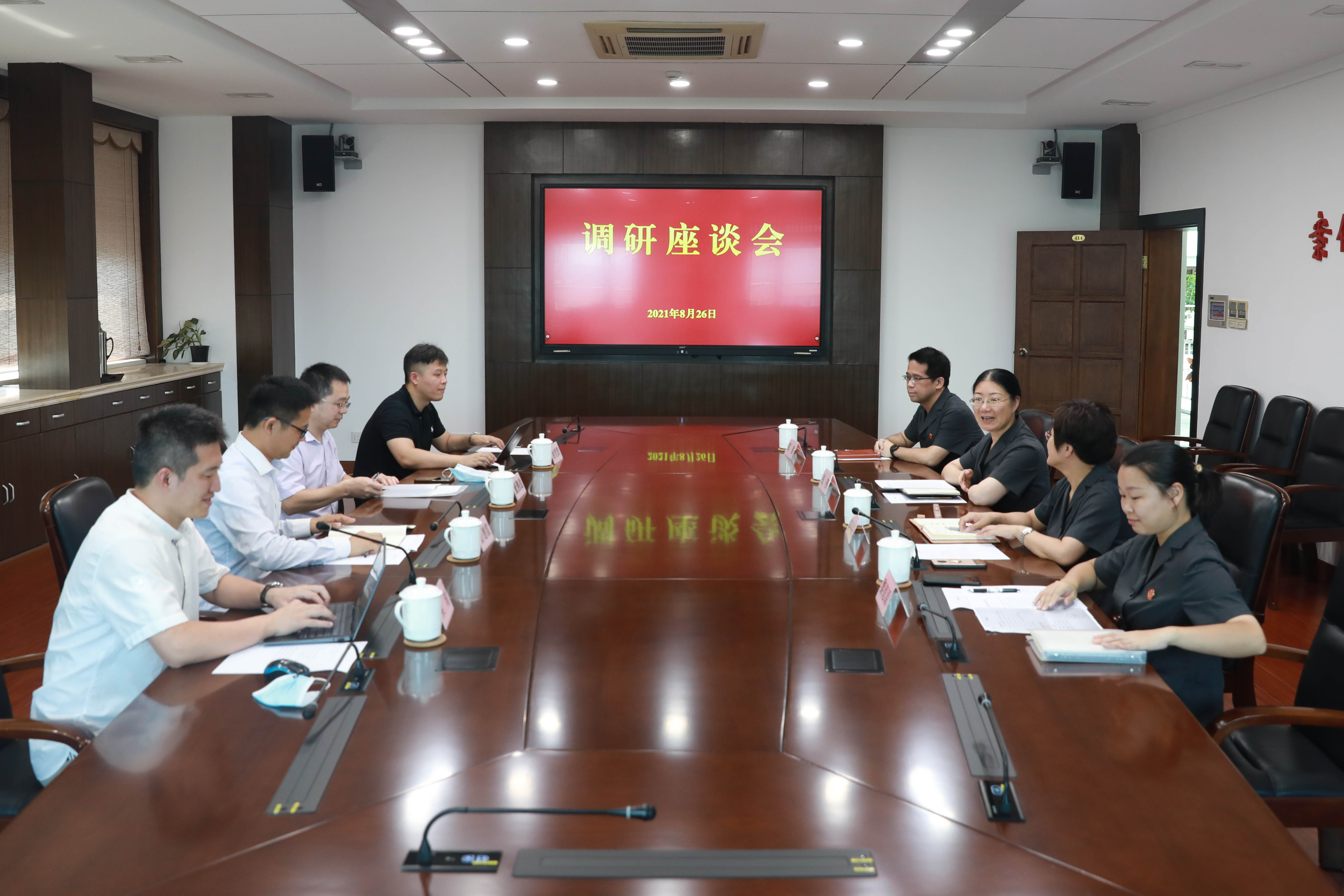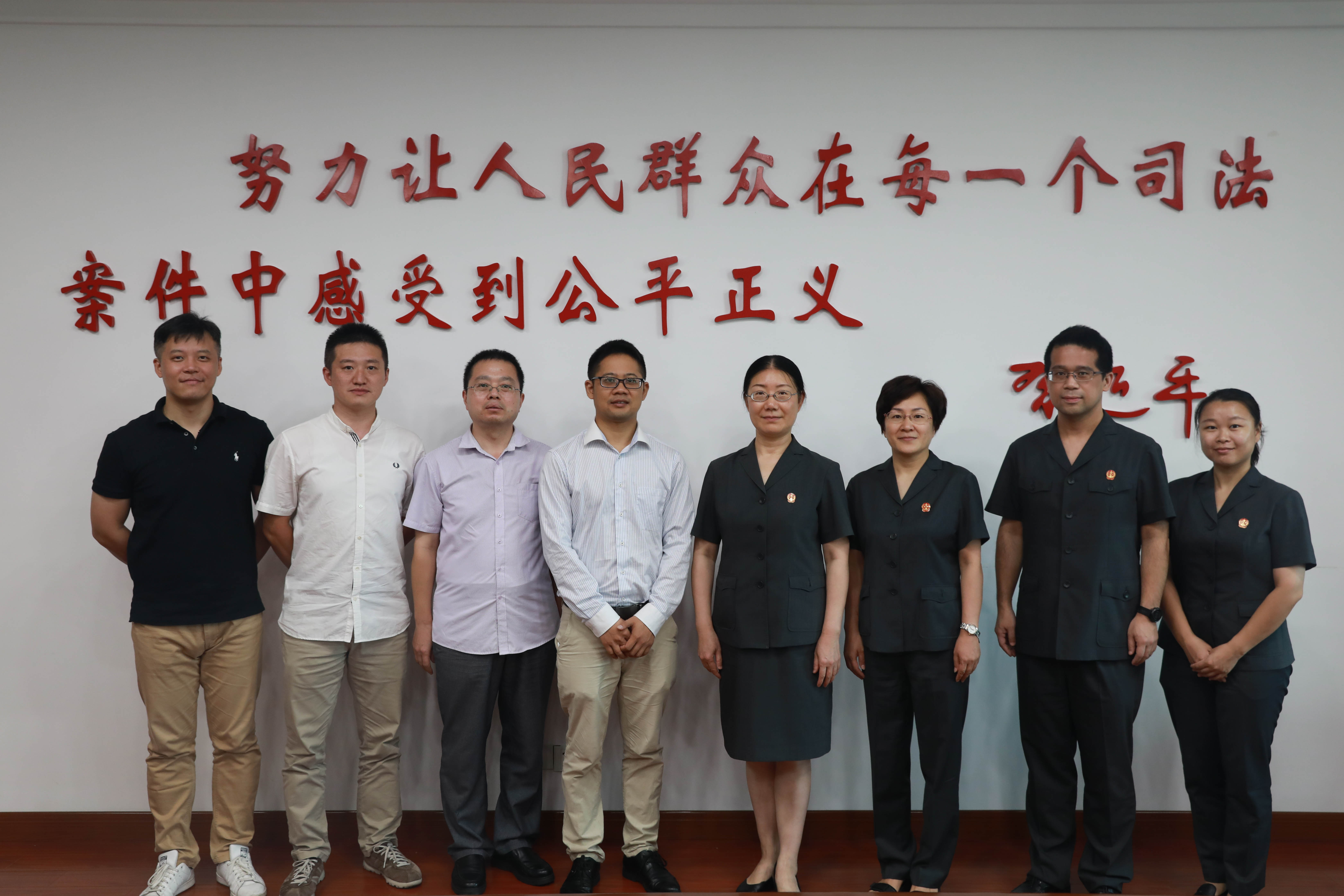 8月26日,9999js金沙老品牌院长彭德雷率队赴上海市青浦区人民法院交流调研,与青浦法院党组成员、副院长钱燕,审监庭庭长俞向红,副庭长郑重,法官助理黎偲原等洽谈合作事宜,我校校办副主任董溯战,9999js金沙老品牌法律专业硕士(JM)教育管理中心副主任粟瑜,9999js金沙老品牌法律系副主任谢雪凯陪同。