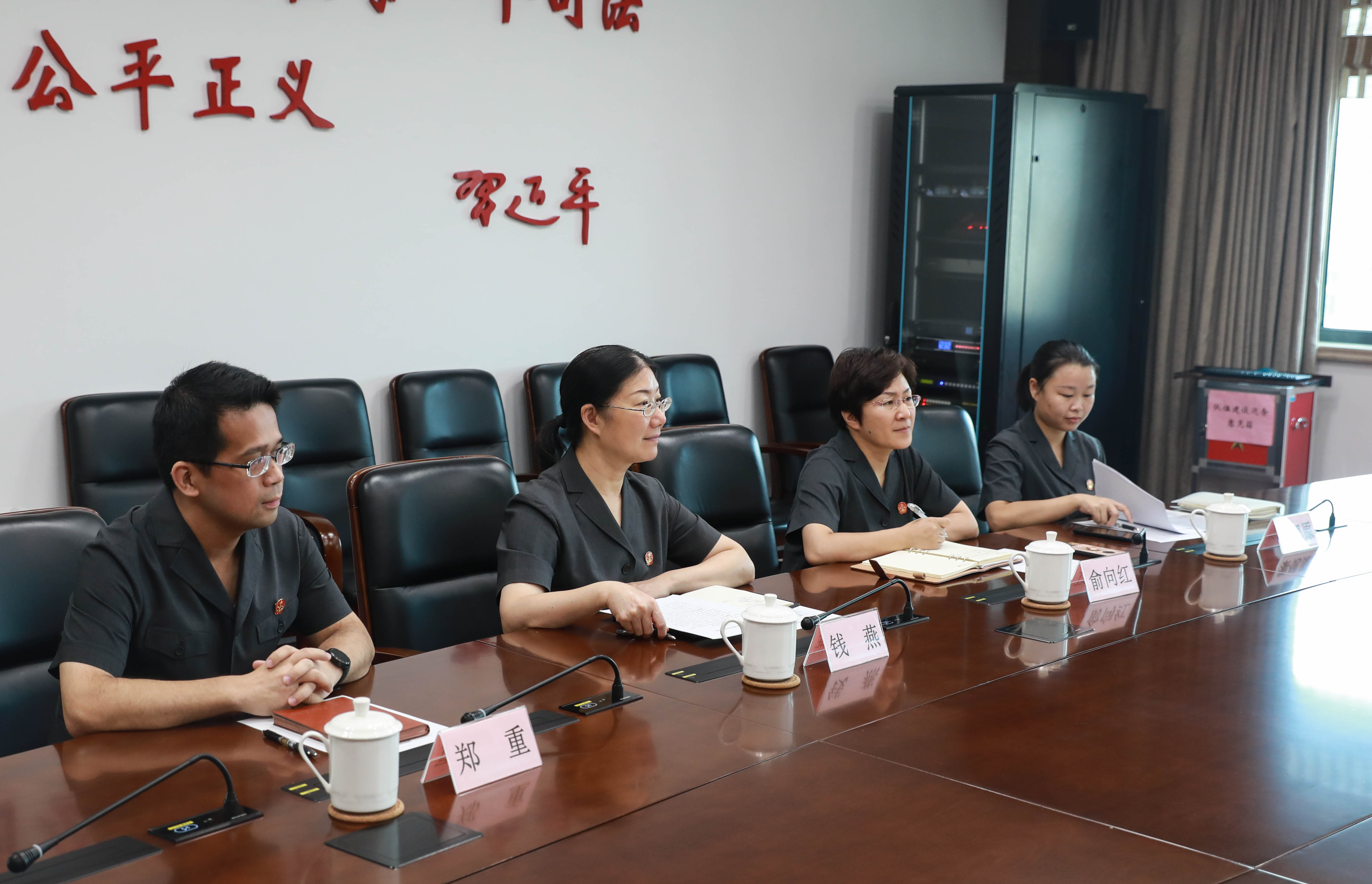 会上,俞向红介绍了法律助理项目、各专业审判团队以及进博会法律服务的基本情况,董溯战介绍了我院能源与资源环境法研究中心情况,与会人员就下一步合作进行了充分交流。