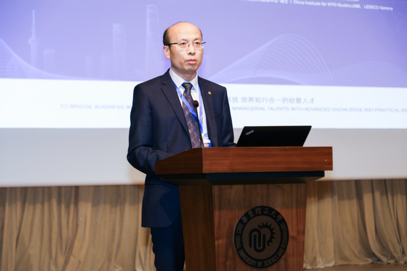 校长轩福贞在论坛上致辞,他指出,当前世界百年变局和世纪疫情交织,面对全球贸易的诸多不确定性,如何更好地把握国际贸易与产业发展趋势,如何更好地开展国际经贸合作,促进全球贸易和世界各国经济的可持续发展,都需要加以深入研究。我校致力于为中国与世界各国的教育和学术合作贡献自己的智慧与力量,并将以本次论坛举办为契机,继续努力将我校打造成论道全球经济发展、促进国际交流合作的重要平台。