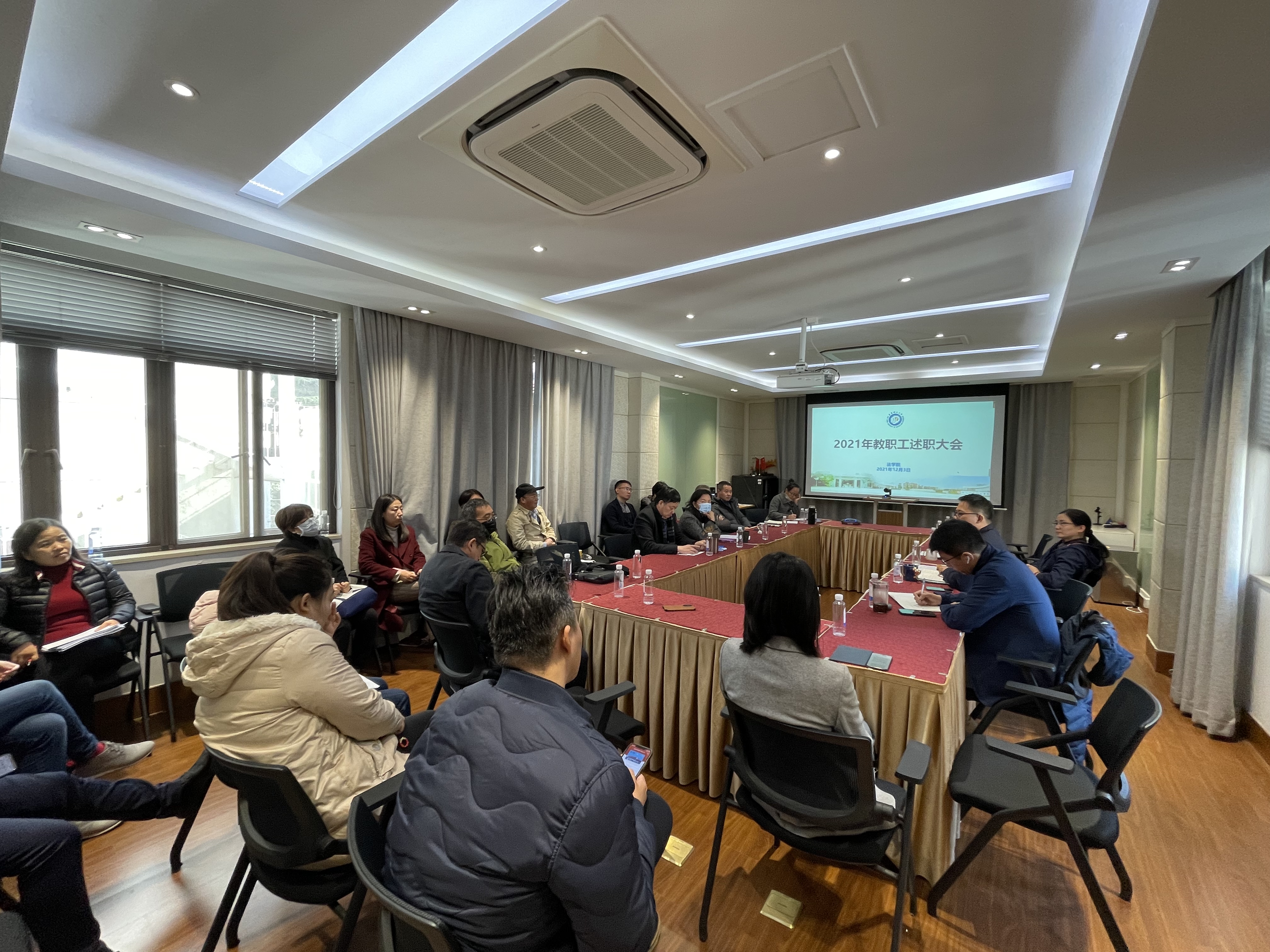 12月3日,9999js金沙老品牌举行2021年教职工述职大会。学院党委书记丁灏、院长彭德雷以及全体教职工出席会议。会议由彭德雷主持。