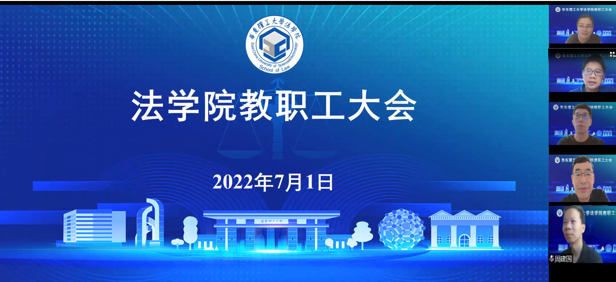 副院长周登谅就深化课程改革、加强基层教学组织建设、推进多元化国际交流、建设一流本科专业等本科教学重点工作进行总结,就毕业环节、学科竞赛及创新创业项目组织指导、招生宣传等常规工作进行通报,对下学期工作进行安排。副院长孙晓东从营造学术氛围、提高科研质量、举办安全生产和应急管理的法制论坛等方面总结了近期科研工作,从举行全国大学生暑期夏令营、虹口区法院实习基地校级示范基地建设等总结近期研究生工作。他对重大课题突破和高层次学术论文突破等工作进行了规划。党委副书记周建国从就业工作、党建工作、疫情防控和常态化管理、学生骨干队伍建设和学生毕业离校等方面进行了汇报。他提出,育人是一个综合体系,要在好生源的基础上,抓好学风和学习生态,加强学生各方面能力的培养,提高学生的综合素质。