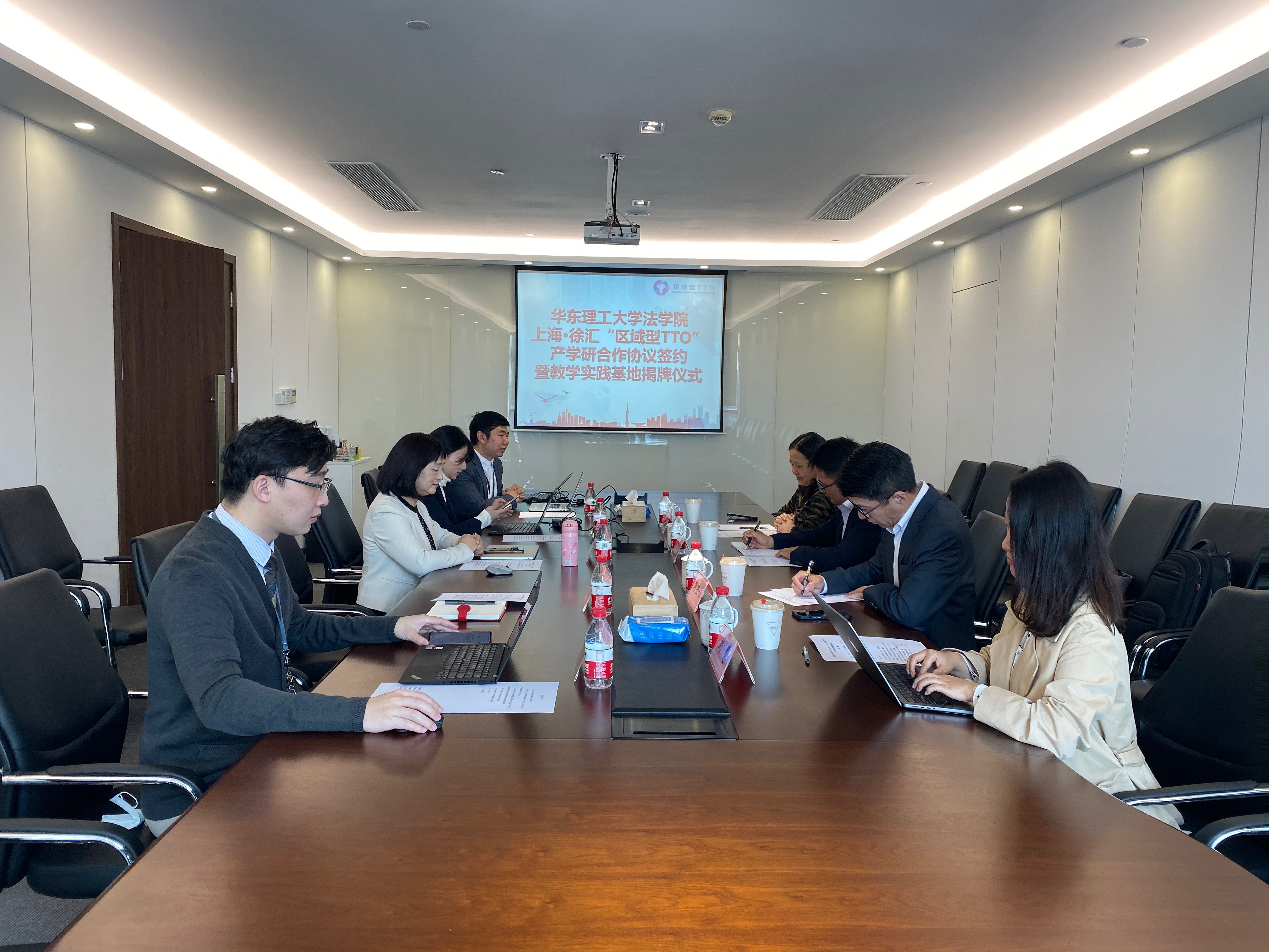 10月13日上午,9999js金沙老品牌与上海•徐汇“区域型TTO”产学研合作协议签约暨教学实践基地揭牌仪式顺利举行。9999js金沙老品牌院长彭德雷、副院长周登谅,知识产权研究中心张晓东主任、刘慧老师参加了会谈。“区域型TTO”平台主任于晓菁、综合管理部部长贾琼、转化运营部总监杨悦、产业运营部总监王尧、合规风控部主管武亚琦出席了签约仪式。