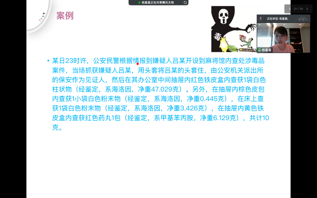 张颖首先介绍了刑事诉讼的流程,以及机构改革后的检察院业务范围。讲述了审查起诉的概念、功能、审查内容、审查方式和流程,使同学们对审查起诉产生初步了解。其次对管辖权问题、讯问技巧、审查终结以及证据的证明标准和非法证据排除进行讲解,并介绍了在疫情影响下审查起诉各环节的变化。最后张颖结合办案经验,介绍了实际讯问时遇到的情况以及典型案例,以案释法,使同学们进一步了解了检察实务。