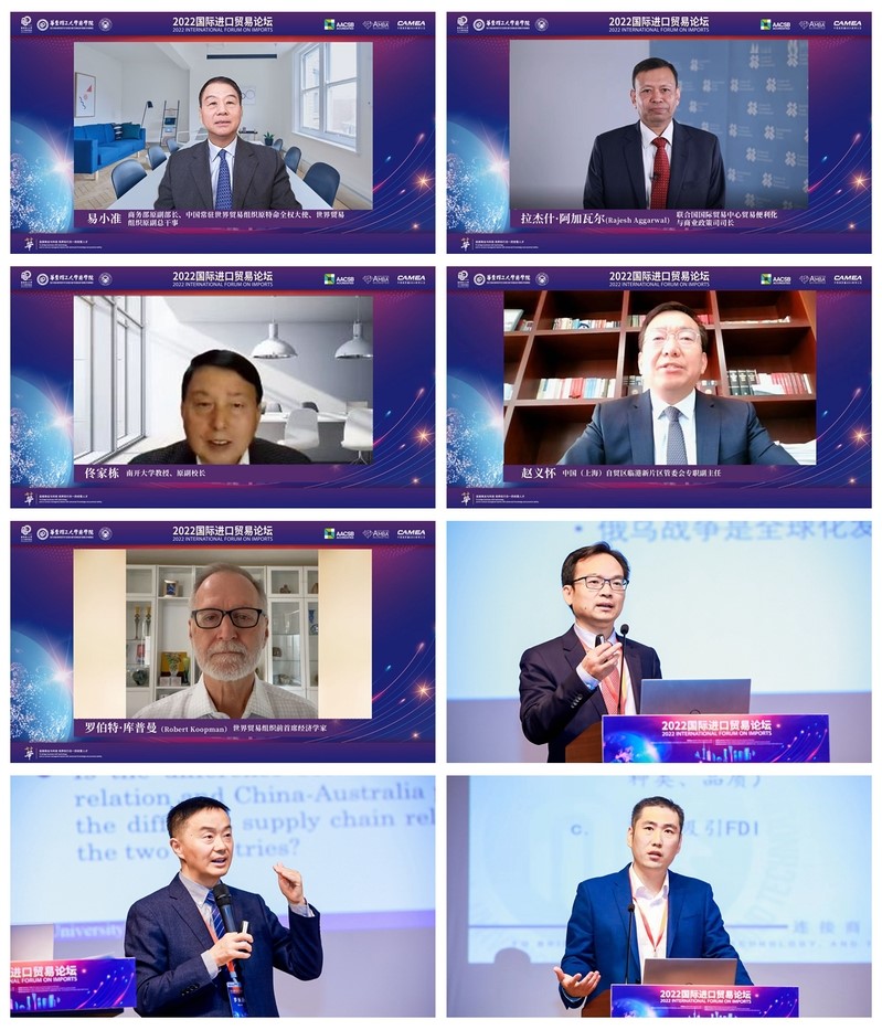 主论坛上,商务部原副部长、中国常驻世界贸易组织原特命全权大使、世界贸易组织原副总干事易小准,联合国国际贸易中心贸易便利化与商业政策司司长拉杰什•阿加瓦尔,南开大学教授、原副校长佟家栋,中国(上海)自贸区临港新片区管委会专职副主任赵义怀,世界贸易组织前首席经济学家罗伯特•库普曼,对外经贸大学中国WTO研究院教授、院长屠新泉,复旦大学经济学院教授、上海世界经济学会会长罗长远,我校商学院特聘研究员车翼分别就“开放共赢”“全球贸易开放”“数字经贸”“开放型经济体制”“贸易政策”“全球产业链”“国际供应链”“进口贸易”等议题发表主旨演讲。