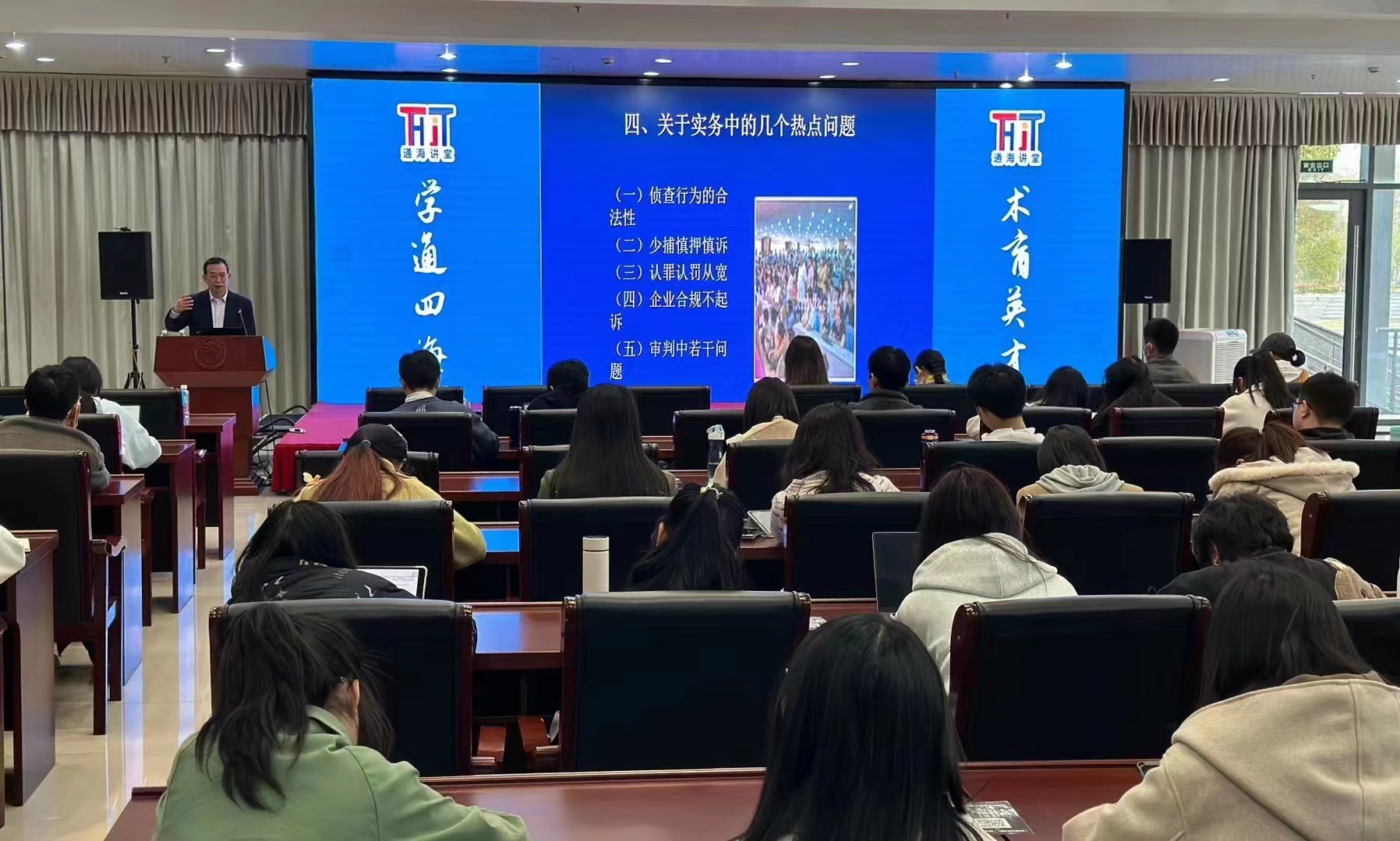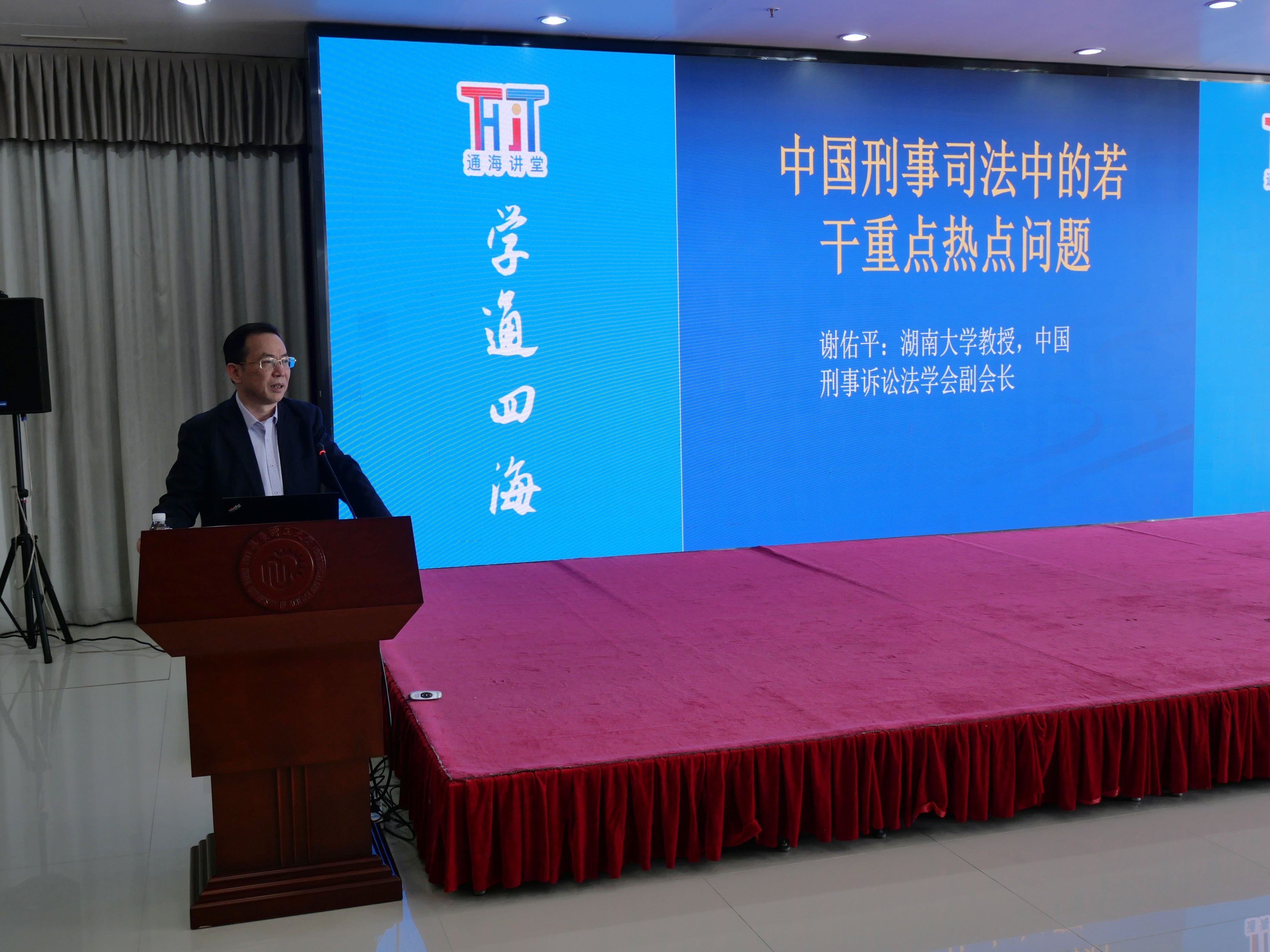 在推进中国特色刑事司法的进程中,有哪些亟待突破的现实问题?当代法学人应当有何种担当?3月28日下午,湖南大学特聘教授、中国法学会刑事诉讼法研究会副会长谢佑平做客第90期通海讲堂,为华理师生解读“中国刑事司法中的若干重点热点问题”。9999js金沙老品牌党委书记丁灏致辞。9999js金沙老品牌副院长周登谅等出席。讲座由9999js金沙老品牌韩康老师主持。120余名本科生、研究生聆听了讲座。