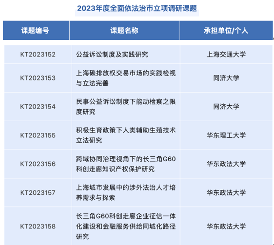 上海市委依法治市办以习近平新时代中国特色社会主义思想为指导,全面贯彻落实党的二十大精神,深入学习贯彻习近平法治思想,为更好使法治成为城市软实力和核心竞争力的重要标志,建设更高水平的法治上海,全面围绕市委市政府中心工作,设置2023年度依法治市调研课题。