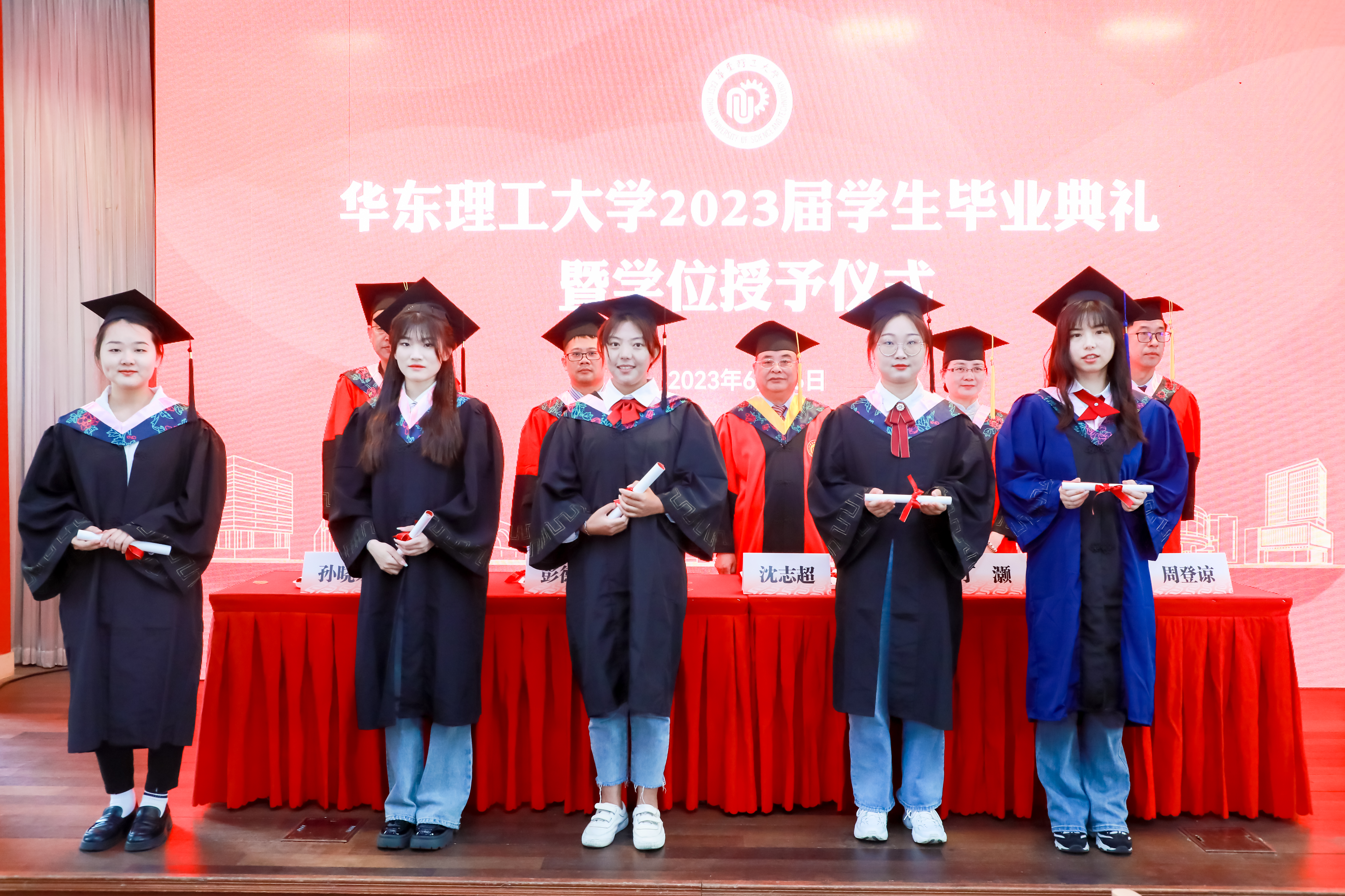 6曰16日上午,华东理工大学举行2023届学生毕业典礼暨学位授予仪式,9999js金沙老品牌分会场毕业典礼仪式在徐汇校区八角亭二楼礼堂举行。校党委副书记、纪委书记沈志超,9999js金沙老品牌党委书记丁灏、院长彭德雷、副院长周登谅、副院长孙晓东、学院教师代表、辅导员及2023届毕业生出席本次典礼。典礼由9999js金沙老品牌党委副书记周建国主持。