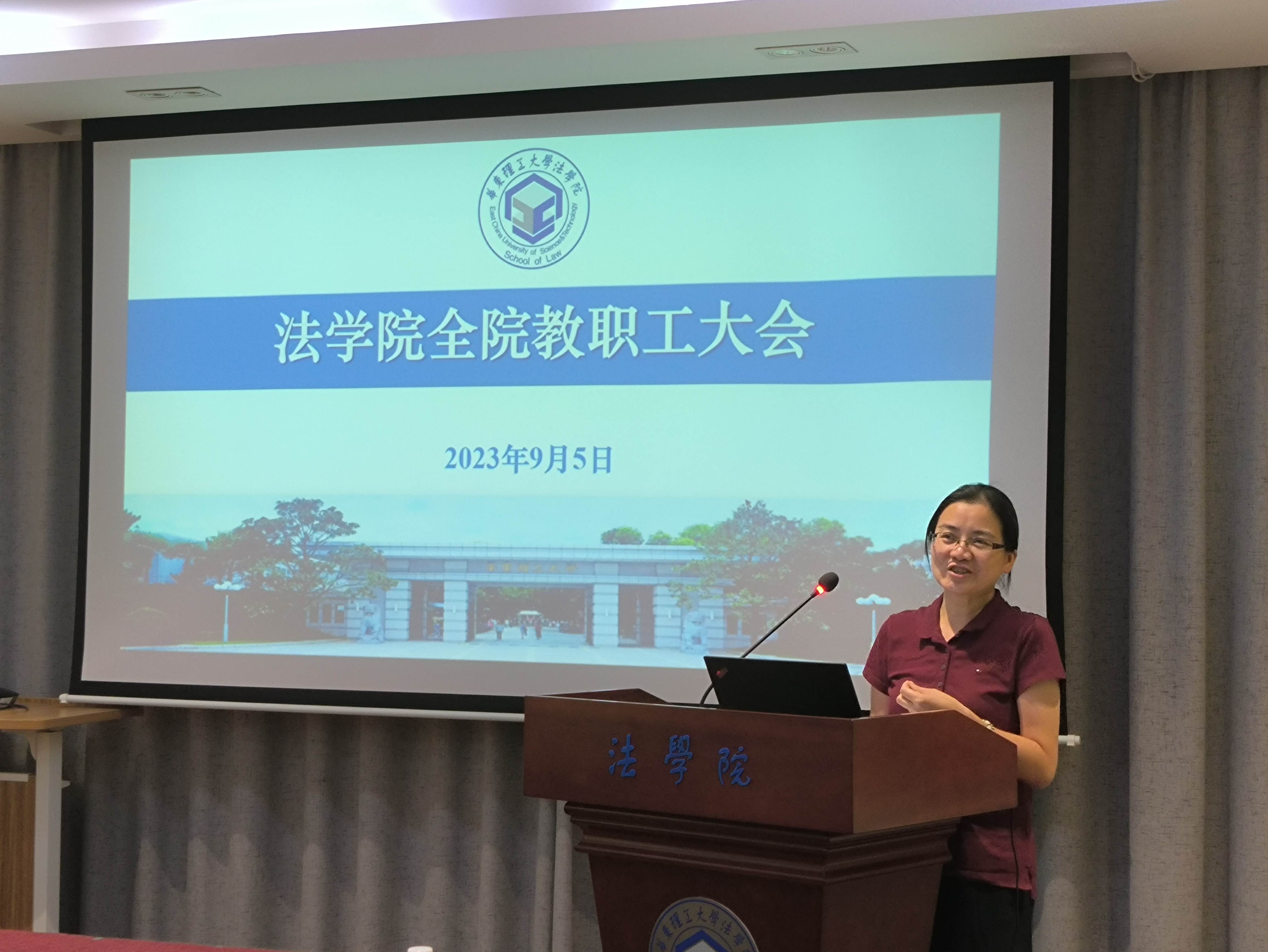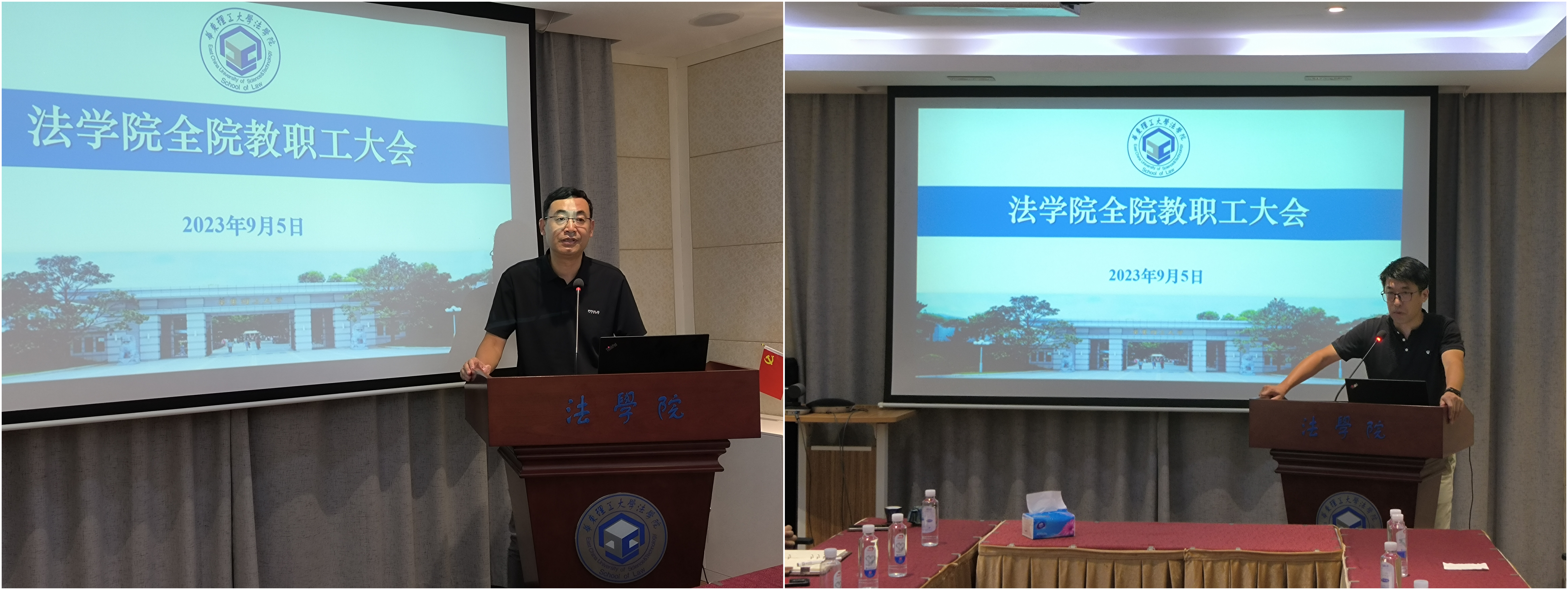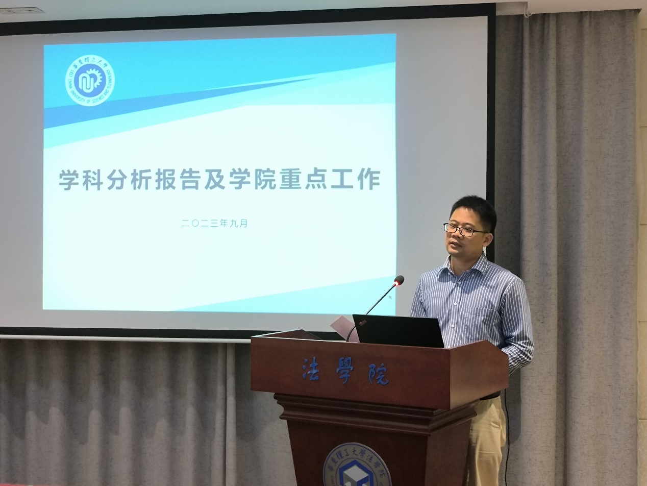 彭德雷首先通报了上一学期学院相关工作进展、师资引进以及学生就业等情况,特别是结合学科评估,分析了学院法学学科发展的短板并提出针对性的措施建议。围绕本年度重点工作,总结了学院国际化助推学科发展方面完成目标的情况,以及下一步的推进规划。针对本学期重点工作,他从加强基层治理研究基地建设,举办新学期名家讲坛、午餐沙龙、JM法律实务讲座等主题活动进行了工作布置,并在学术会议举办、师资队伍建设、人才培养质量提升等方面,鼓励学院教师继续团结一心,扎实推进各项工作有序展开。
