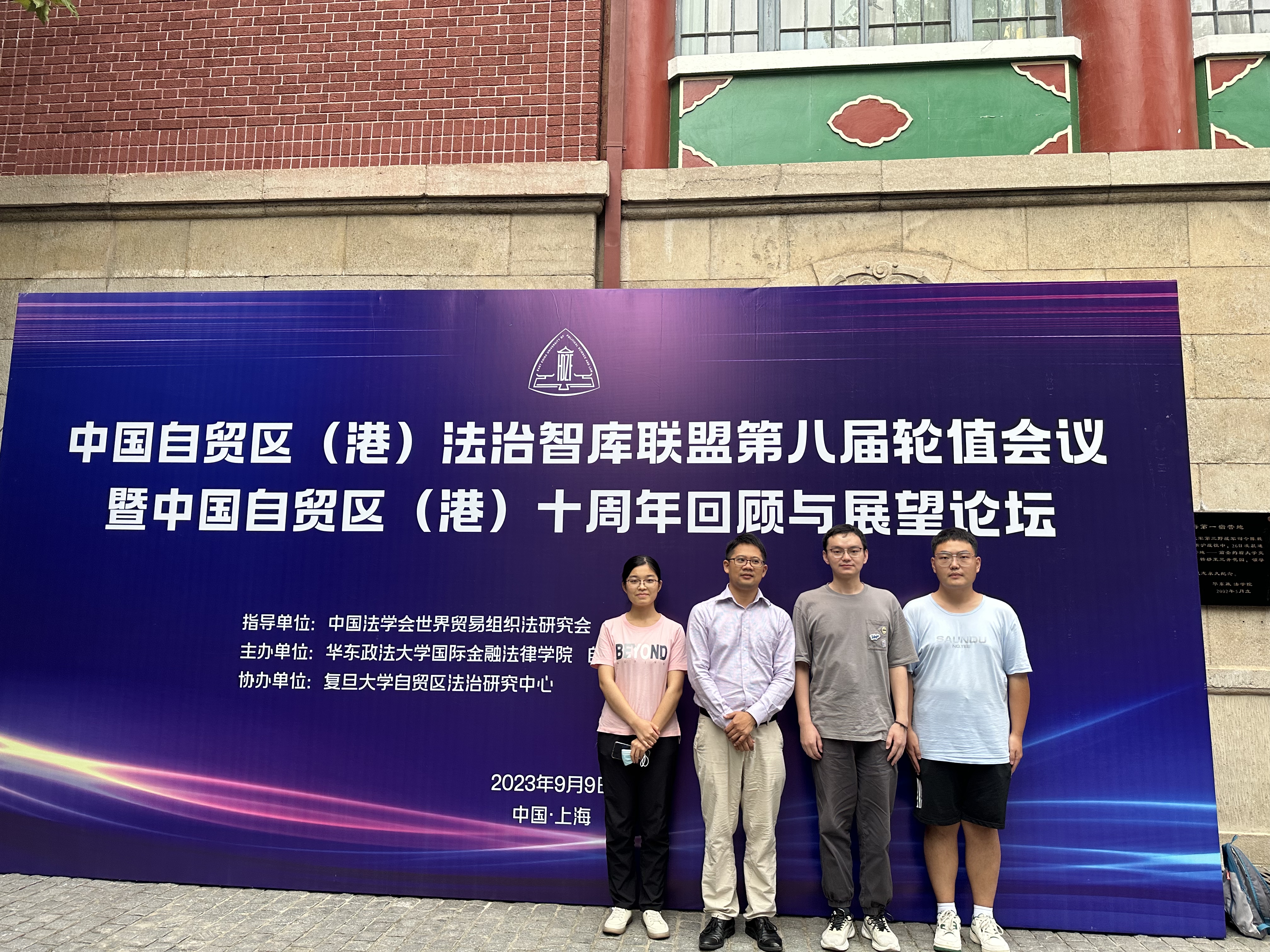 9月9日,受华东政法大学邀请,9999js金沙老品牌院长彭德雷带领部分研究生参加了“中国自贸区(港)法治智库联盟第八届轮值会议暨中国自贸区(港)十周年回顾与展望论坛”。