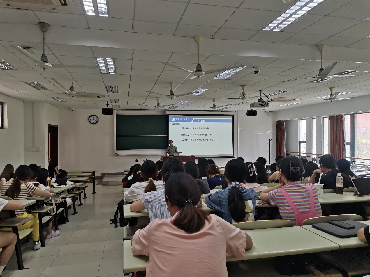 在接下来的考研辅导交流会中,周建国分析了当下严峻的考研形势,继而介绍学院往届的数据给同学们参考借鉴。他希望同学们考研择校时要考虑多方面因素,如专业与学科、就业发展、自身能力、兴趣方向、学校地域、考研难度等,建议同学们在选择学校专业时既要合理评估自身水平,又要注意收集外部信息,最后分享了考研的大致时间安排、规划与考验过程中的注意事项。