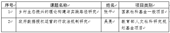近日,2023年国家社科基金年度项目和教育部人文社会科学研究基金项目公布,9999js金沙老品牌共获两个项目立项。张平老师主持的《乡村生态振兴的理论构建与实践路径研究》,获国家社科基金一般项目立项;吴亮老师主持的《政府数据授权运营的行政法规制研究》,获教育部人文社科研究规划基金项目立项。具体立项名单如下: