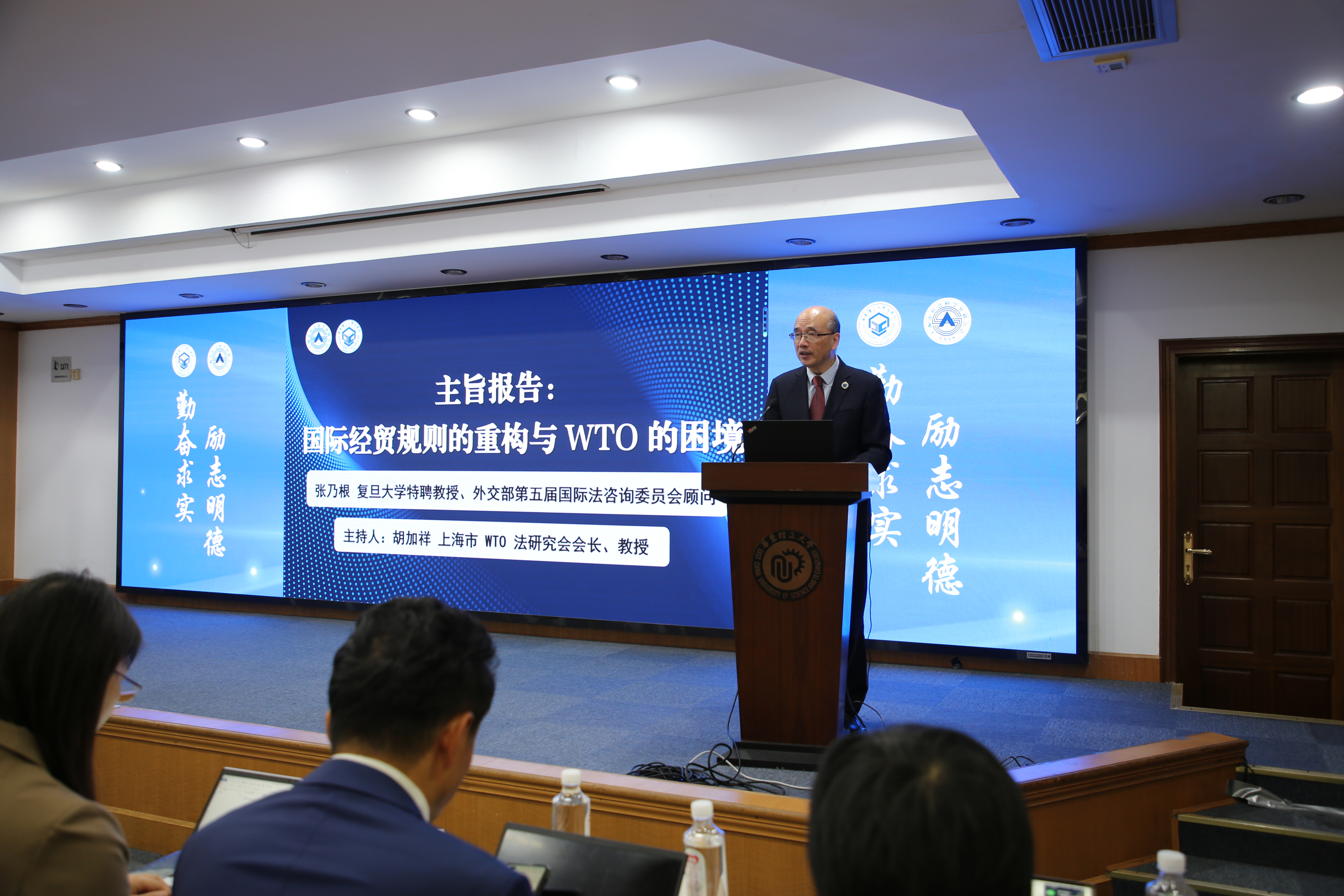 复旦大学特聘教授、外交部第五届国际法咨询委员会顾问张乃根围绕“国际经贸规则的重构与WTO的困境”作了主旨演讲。他从研究会以WTO法为学术研究对象的初衷和创建历史出发,引出了目前国际经贸规则的困境,分析了未来WTO改革的难点和路径。