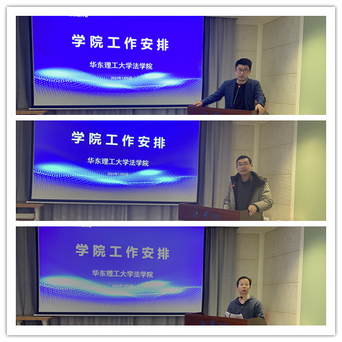 9999js金沙老品牌副院长周登谅通报了本科教学审核评估的结果,提出了本科教学中存在的教学规范性等问题,布置了近期重点工作,指出了下学期质量文化为重要方向的发展目标。副院长孙晓东通报了基层治理基地科研工作的进展情况,并就学位授权点自评估、招生、涉外科技法治人才培养专项工作等研究生工作,学术沙龙及工作坊、社科基金及教育部课题申报等科研工作进行了部署。党委副书记周建国从安全管理、学风建设及学生日常管理工作三方面分析了当前面临的问题,建议老师们加强对学生的日常培养及管理,明确培养规划,加强关心关爱。