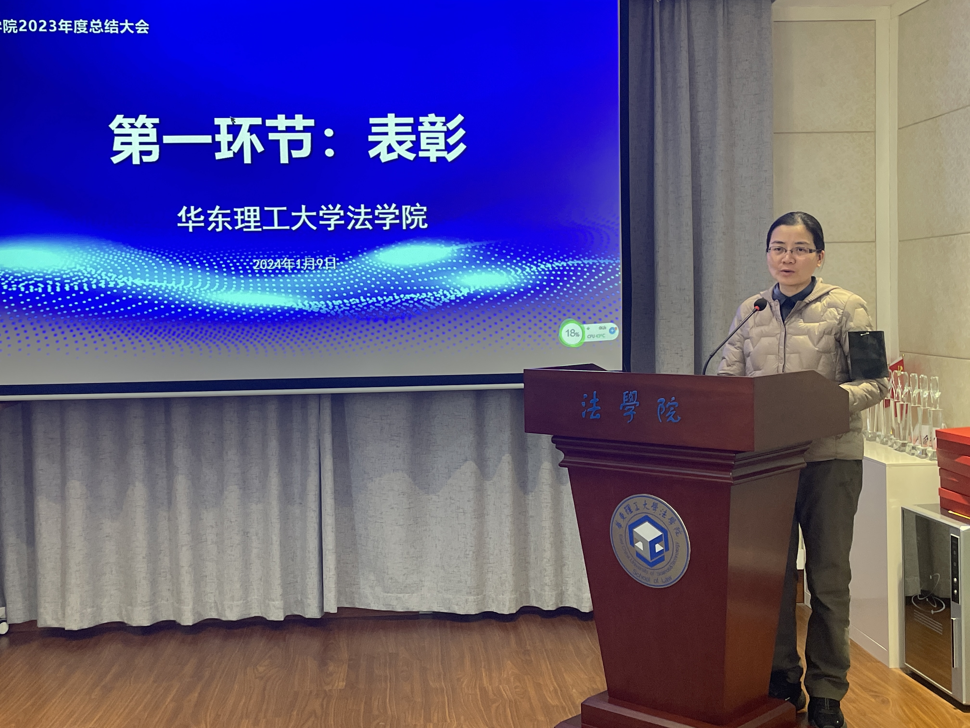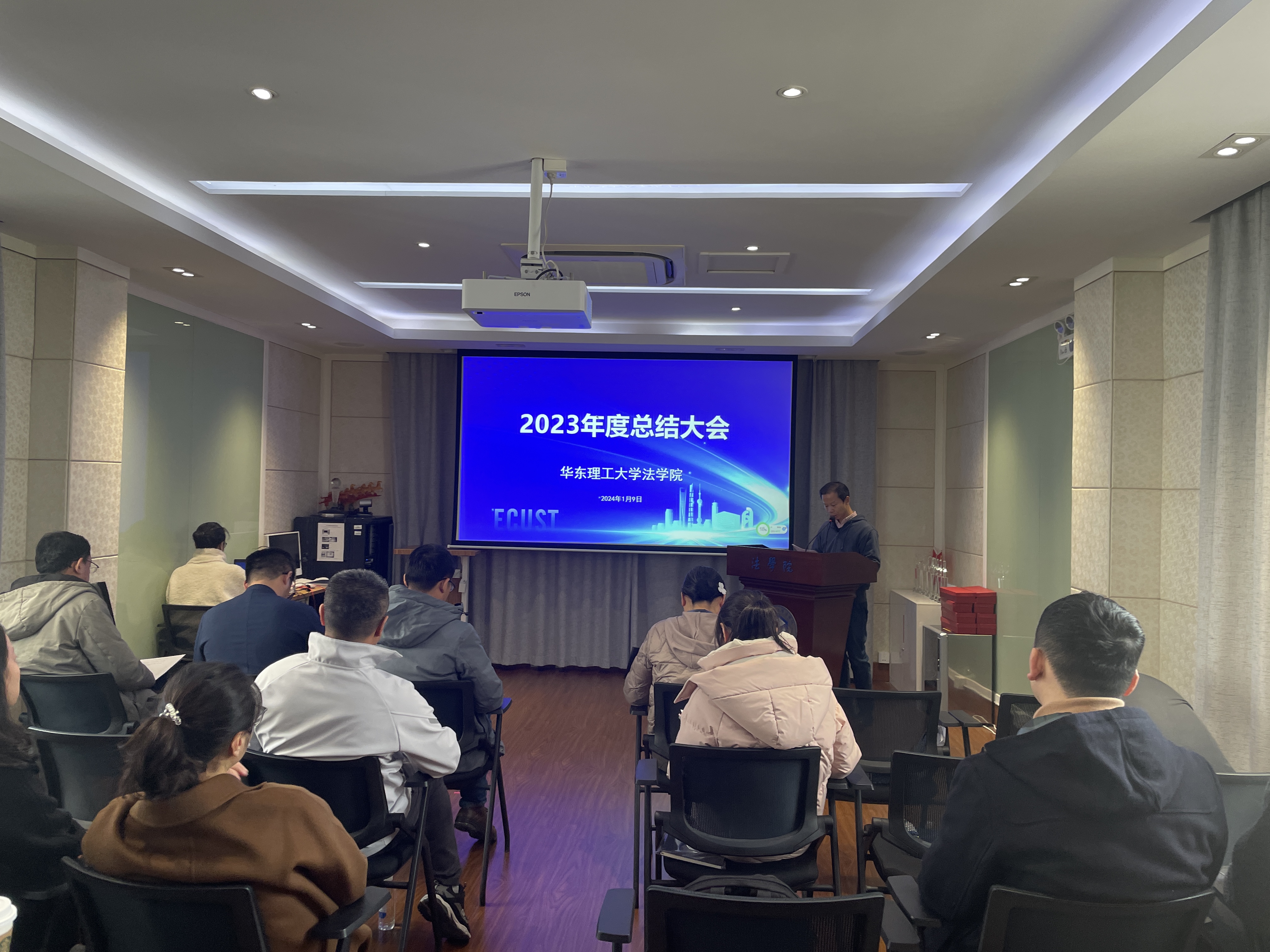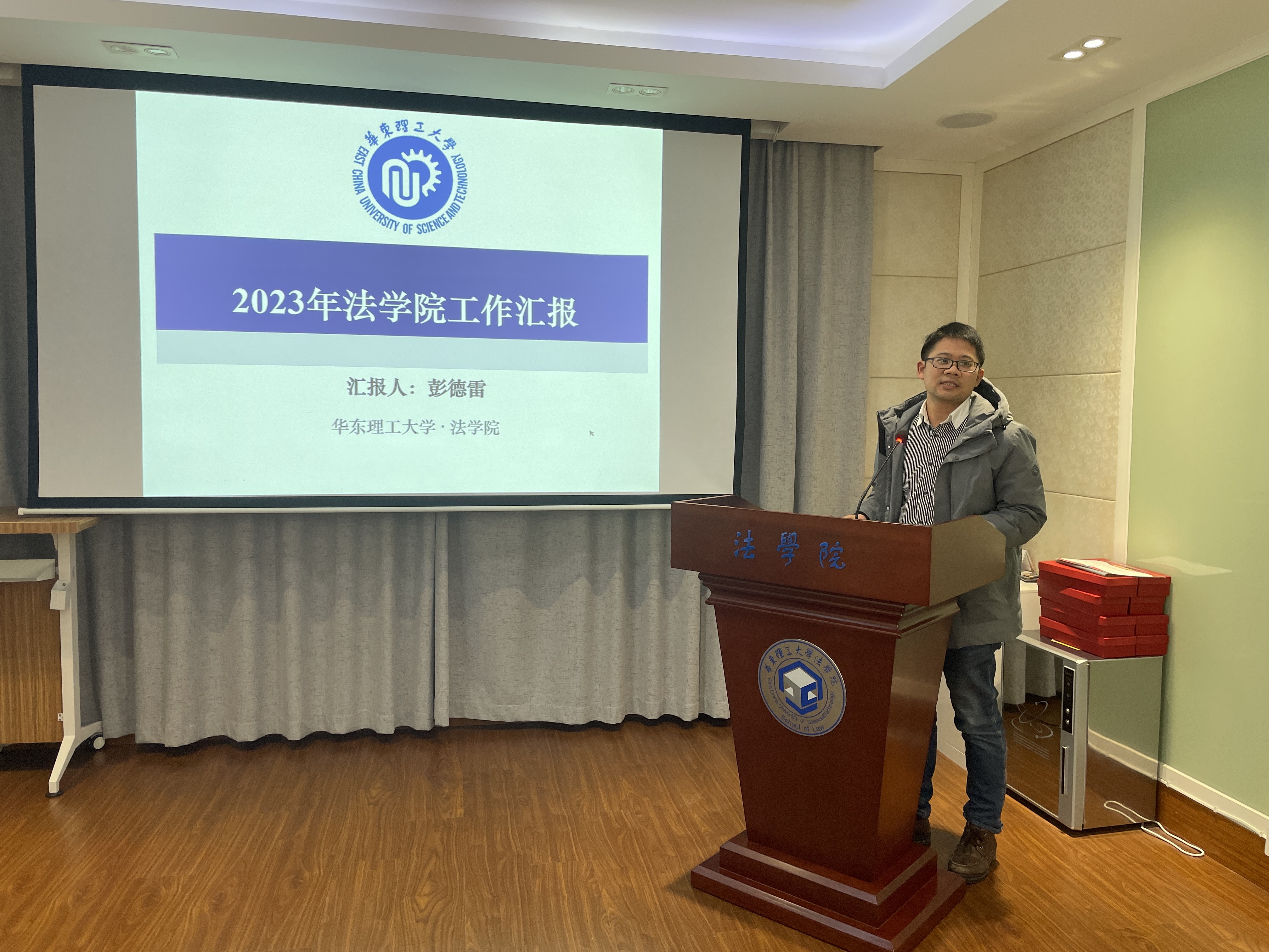 彭德雷总结了过去一年学院在师资建设、学术交流、国际合作、学科发展、人才培养等方面的重点工作、亮点工作及特色工作。他从法学学科建设与发展、涉外科技法治人才培养、引进优秀人才及“明德学者”培育计划等方面对未来一年的学院重点工作进行了展望。他指出,过去一年,9999js金沙老品牌上下一心,取得了不错的成果。他提出,中青年教师还需继续发挥不可替代的作用,导师还需继续加强对学生严管与厚爱;学院未来还需投入更多力量持续深入推进重点工作的落实,进一步营造良好的学术氛围和学院文化。