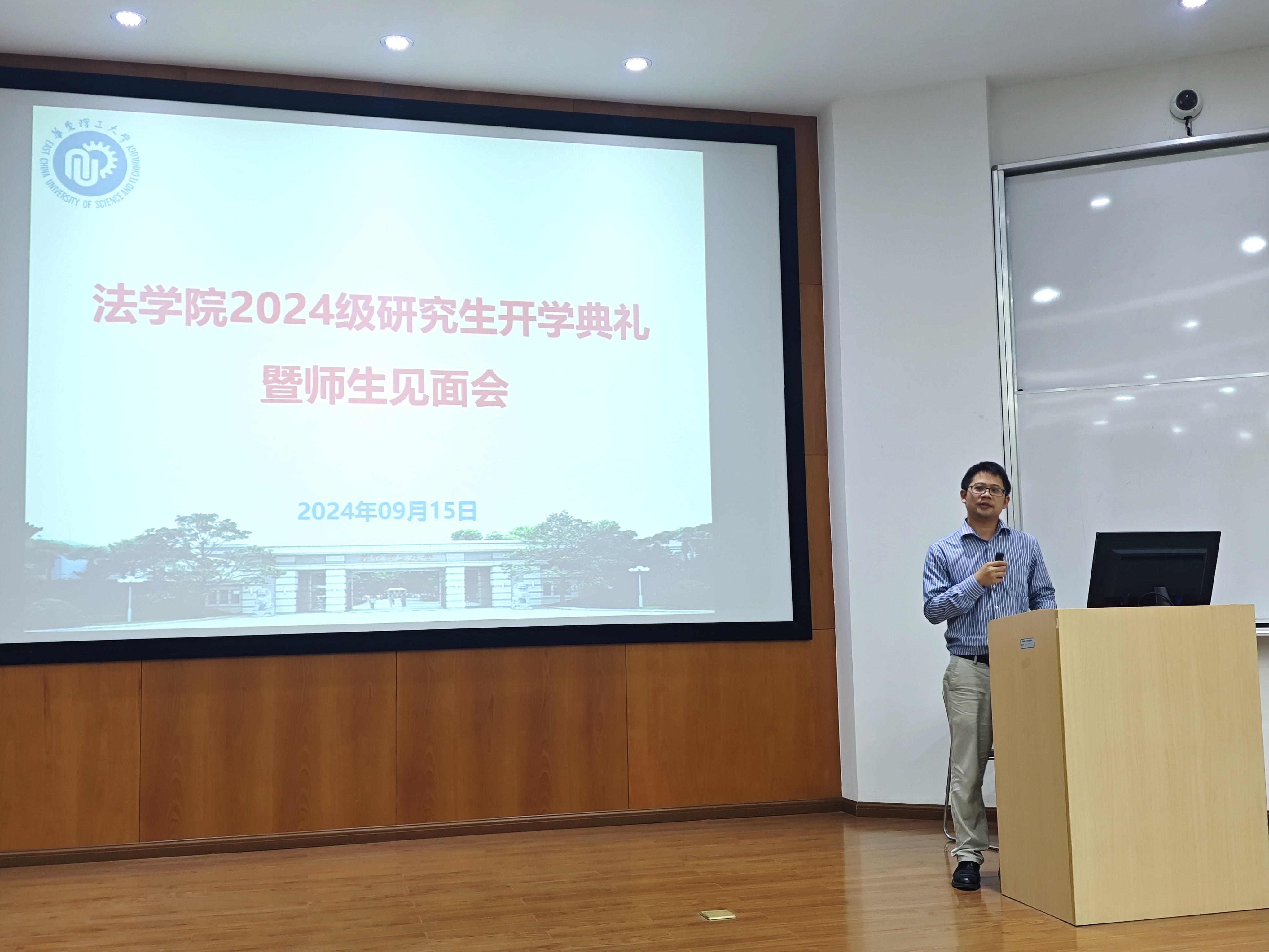 导师发言环节,导师代表任虎副教授代表导师发言。任虎代表9999js金沙老品牌全体导师祝贺2024级非全日制法律硕士研究生的顺利入学,希望同学们能做好读研规划,找准学术研究方向,加强与导师的交流,为未来的法律职业发展奠定坚实的专业知识基础。